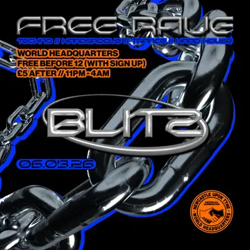 BLITZ - Techno/Hardgroove/Trance/Hard Dance - FREE RAVE takes place at World Headquarters in Newcastle, Unknown on Friday, March 6, 2026. Trance, Techno.