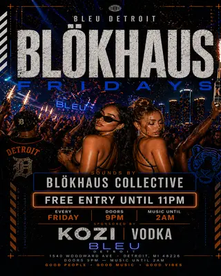 BlokHaus Friday's at Bleu in Detroit on Friday, May 1, 2026. The event focuses on House music.