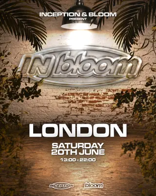 Bloom & Inception present: In-Bloom with Special Guest TBA takes place at TBA in London on Saturday, June 20, 2026. The event focuses on Tech House music.