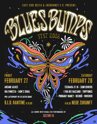 BLUES BUMPS Fest 2026 · with Tschaika 21/16, Sunflowers, Arcane Allies on February 27, 2026 at TBA - B.L.O. Kantine + Neue Zukunft, Berlin features electronic music performances DJ sets.