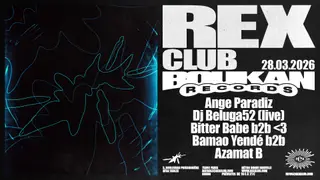 Boukan Records: Ange Paradiz, Dj Beluga52(Live), Bitter Babe, Bamao Yendé b2b Azamat B on March 28, 2026 at Rex Club, Paris features DJ Beluga92, Bitter Babe, Toma Kami and Bamao Yendé performing techno DJ sets.
