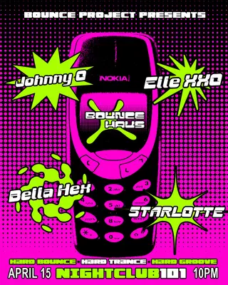 Bounce Haus takes place at Nightclub 101 in New York City on April 15, 2026. This event features two notable artists from the electronic music scene. JOHNNY O is known for his work in the trance genre, bringing a melodic style that draws from his extensive experience in the industry. elle xxo, also part of the lineup, is recognized for her contributions to techno, combining experimental sounds with a driving rhythm. The event will showcase both trance and techno music.