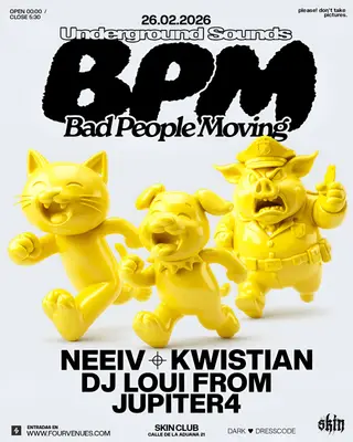 BPM: DJ LOUI FROM JUPITER4 + Neeiv + KWISTIAN on February 26, 2026 at Skin, Miami features DJ LOUI FROM JUPITER4 and Neeiv performing DJ sets.