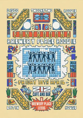 Brewery Place Boogie takes place at The 212 Café & Bar in Leeds, United Kingdom on April 10, 2026. Featuring Fontrodona. House and Disco sounds all night.