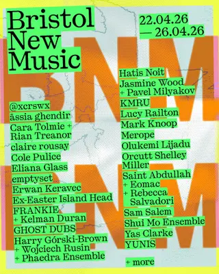 Bristol New Music 2026 on April 22, 2026 at Various Venues, Bristol, Brussels features Rian Treanor, claire rousay, Emptyset, Kelman Duran, Ghost Dubs, Harry Górski-Brown, Wojciech Rusin, KMRU, Eomac, Rebecca Salvadori (2) and Yunis performing ambient DJ sets.