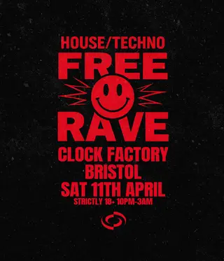 Bristol's House/Techno FREE RAVE takes place at The Clock Factory in Bristol, United Kingdom on April 11, 2026. Techno, House.