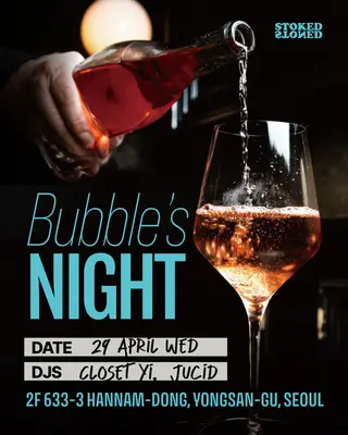 Bubble's Night takes place at Stoked&stoned in Seoul, South Korea on April 29, 2026. Featuring Closet Yi, Jucid. House sounds all night.