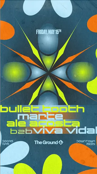 bullet tooth on May 15, 2026 at The Ground at Club Space, Miami features bullet tooth, Marte (US), Ale Acosta and Viva Vidal performing bass DJ sets.