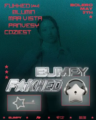 Bumpy x FUKHED In Seoul on May 9, 2026 at Bolero, Seoul features FUKHED, BLUMIN, MAR VISTA, PanVesy and Coziest performing house DJ sets.