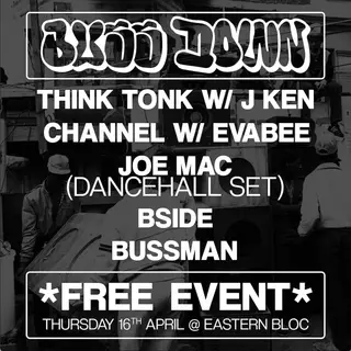 Bussdown takes place at Eastern Bloc Records in Manchester, United Kingdom on April 16, 2026. Featuring Think Tonk, EVABEE, Joe Mac. Dubstep and Dancehall sounds all night.