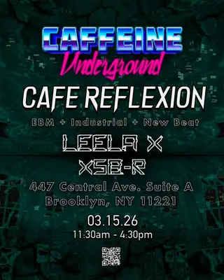 Cafe Reflexion - ft LEELA X (Debut) & XSB-R takes place at Caffeine Underground in New York, United States on March 15, 2026. Featuring XSB-R. EBM and Industrial sounds all night.