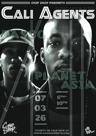 Cali Agents - Planet Asia & Rasco 25 Anniversary tour takes place at Chip Shop Brixton in London, United Kingdom on March 7, 2026. Breakbeat and Hip-Hop sounds all night.