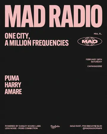 CAMARADERIE: PUMA, HARRY, AMARE takes place at Mad Radio Miami in Miami, United States on Saturday, February 28, 2026. Featuring Puma (US). House.