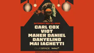 Carl Cox, Viot & Maher Daniel on May 23, 2026 at Club Space Miami, Miami features Carl Cox, Viot, Maher Daniel, Danyelino and Mai iachetti performing techno DJ sets.