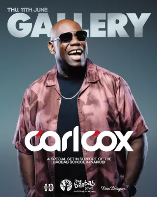 Carl Cox x Gallery (For the Baobab Kenya) on June 11, 2026 at Gallery, London features Carl Cox performing house DJ sets.