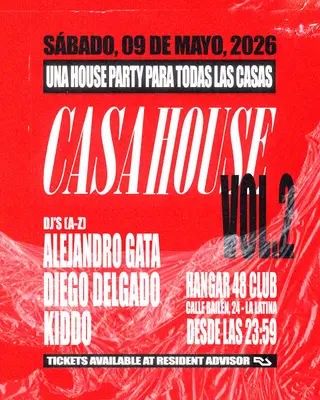 CASA HOUSE:Alejandro Gata, DIEGO DELGADO, KIDDO takes place at Hangar48 Club in Madrid, Spain on May 9, 2026. Featuring Alejandro Gata. Tech House sounds all night.