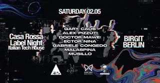 Casa Rossa Label Night Berlin takes place at Birgit in Berlin, Germany on May 2, 2026. Featuring Gary Caos, Ector Nina, Gabriele Congedo. House and Tech House sounds all night.