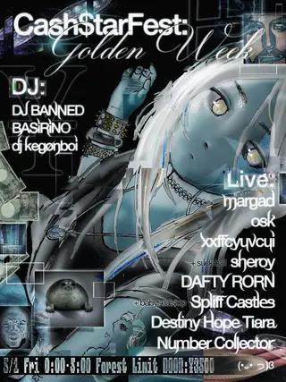 Cash$tarFest:Golden week takes place at Forestlimit in Tokyo, Japan on May 1, 2026. Featuring Number Collector, BASiRiNO. Bass sounds all night.