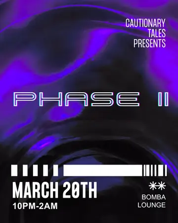 Cautionary Tales presents: Phase II takes place at Bomba nyc in New York City, Unknown on Friday, March 20, 2026. Featuring Gabatron, Remi Jolie. Tech House, Deep House.