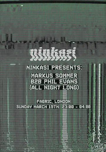 CAYA by fabric: ninkasi - Phil Evans & Markus Sommer (All Night Long) takes place at fabric in London, United Kingdom on Sunday, March 15, 2026. Featuring Phil Evans, Markus Sommer.