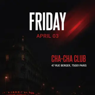 Cha Cha Club Paris on April 4, 2026 at TBA, Paris features electronic music performances house DJ sets.