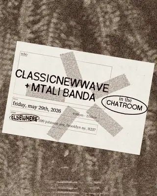 Chatroom: classicnewwave + Mtali Banda on May 29, 2026 at Chatroom at Elsewhere, New York City features electronic music performances DJ sets.