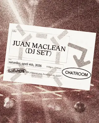 Chatroom: Juan Maclean (DJ Set) takes place at Chatroom at Elsewhere in New York City on April 4, 2026. Featuring Juan Maclean.