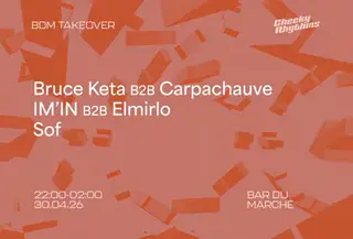 Cheeky Rhythms takeover BDM on April 30, 2026 at Bar Du Marché, Brussels features electronic music performances techno DJ sets.