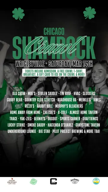 Chicago Shamrock Crawl — Wrigleyville (25+ Bars) takes place at TBA in Los Angeles, United States on Saturday, March 14, 2026.