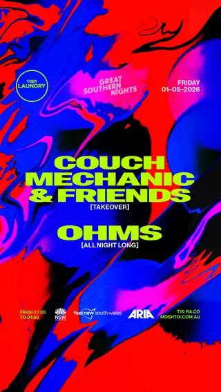 Chinese Laundry - Couch Mechanic & FRIENDS + OHMS [ALL NIGHT LONG] takes place at Chinese Laundry in Sydney, Australia on May 1, 2026. Featuring OHMS (2), Couch Mechanic. Electro sounds all night.