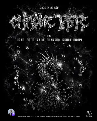 CHROME TASTE takes place at The Henz Club in Seoul, South Korea, on April 25, 2026. This event features techno artist CHANXER, known for his innovative soundscapes and energetic performances, alongside DNOPF, who is recognized for his deep house influences and distinctive production style. Both artists contribute to the electronic music genres represented at the event, showcasing their unique interpretations within techno and deep house.