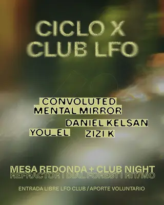 Convoluted Mental Mirror and You_el headline CICLO X CLUB LFO - REFRACTOR, DIAL FOREST, RIT/MO at TBA - LFO, Madrid, Spain on March 28, 2026. Featuring Convoluted Mental Mirror, You_el, Daniel Kelsan, zizi k.