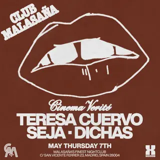 Cinema Verité feat. Seja + Teresa Cuervo + Dichas on May 7, 2026 at Club Malasaña, Madrid features seja (1) and Dichas performing house DJ sets.