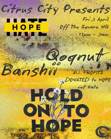 Citrus City x HOPE not hate takes place at Off The Square in Manchester, United Kingdom on Friday, April 3, 2026. Featuring Qoqnut, BANSHII. Techno, House.