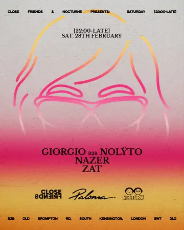 CLOSE FRIENDS X NOCTURNE X Paloma takes place at Paloma in London, United Kingdom on Saturday, February 28, 2026. House, Afro House.
