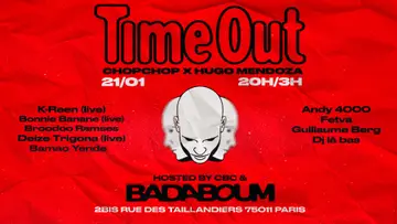 Mercredi 21 Janvier - 20H00/06H00 Club — CBC 008: ChopChop x TimeOut x Hugo Mendoza K-reen (live), Bonnie Banane (live), Broodoo Ramses, Deize Tigrona (live), Bamao Yendé, Andy 4000, Fetva, Guillaume Berg, DJ Là-Bas, IMA, Dalel 20H : Dégustation de la nouvelle bouteille de ChopChop en collaboration avec TimeOut ——————————————————— Info & Reservation : badaboum.paris ——————————————————— BADABOUM 2 Rue des Taillandiers — 75011 Paris ——————————————————— FR: L’accès à l’événement est interdit aux personnes mineures. Une pièce d’identité pourra être exigée à l’entrée. L’établissement se réserve le droit de refuser l’entrée. Fête libre, inclusive et safe. Nous offrons un espace respectueux où chacun peut s’exprimer librement. Tout comportement discriminatoire (homophobie, transphobie, racisme, misogynie, etc.) entraînera l’exclusion et des poursuites. EN: Access to the event is forbidden to minors. Identification may be required on entry. The venue reserves the right to refuse entry. A free, inclusive and safe party. We offer a respectful space where everyone can express themselves freely. Any discriminatory behaviour (homophobia, transphobia, racism, misogyny, etc.) will result in exclusion and prosecution.