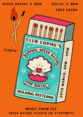 Club Copine Sapphic Speed Dating & Social takes place at Holding Patterns in Leeds, United Kingdom on March 29, 2026. Electro, Funk / Soul.
