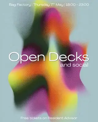 Set at The Bag Factory, Club Curated: Open Decks & Social 2026 brings together artists and fans in Manchester on Thursday, May 7, 2026. This event brings together artists and fans who share a passion for dance music culture and electronic sounds. The Bag Factory has hosted electronic events in Manchester as part of the area's regular club programming. It draws fans seeking authentic electronic music in Manchester. Designed for a discerning audience, The Bag Factory's programming draws fans of electronic music across Manchester. The production is designed to showcase the depth and diversity of contemporary electronic music.