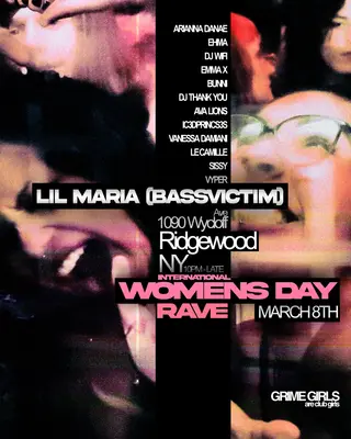 CLUB GIRLS INTERNATIONAL WOMENS DAY on March 8, 2026 at H0L0, New York features DJ Thank You, DJ WIFI, Bunni, Vyper, LeCamille, Sissy and Arianna Danae performing techno DJ sets.