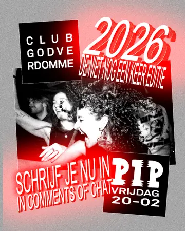 PIP Den Haag in The Hague, Netherlands presents CLUB GODVERDOMME 2026, a curated electronic music experience on Friday, February 20, 2026. This event brings together artists and fans who share a passion for dance music culture and electronic sounds.