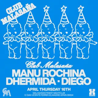 Club Malasaña feat. Manu Rochina + DHERMIDA + Diego takes place at Club Malasaña in Madrid, Spain on April 16, 2026. Featuring DHERMIDA, Diego (3). House and Electronica sounds all night.