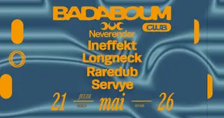 Club — Neverender: Raredub, Servye, Ineffekt, Longneck on May 21, 2026 at Badaboum, Paris features Raredub, Ineffekt and Longneck performing house DJ sets.