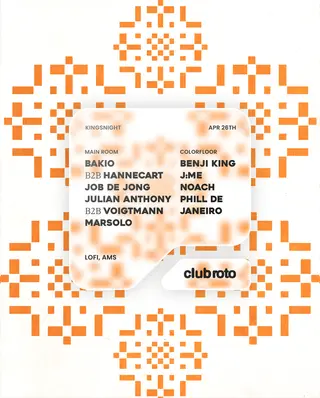 Club Roto King's Night takes place at Lofi in Amsterdam, Netherlands on April 26, 2026. Featuring Bakio, Hannecart, Benji King, Job de Jong and 6 more. House sounds all night.