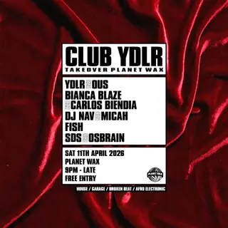 CLUB YDLR on April 11, 2026 at Planet Wax, London features YDLR, Bianca Blaze, Carlos Biendia, DJ Nav, Micah Fish and SDS (2) performing house DJ sets.