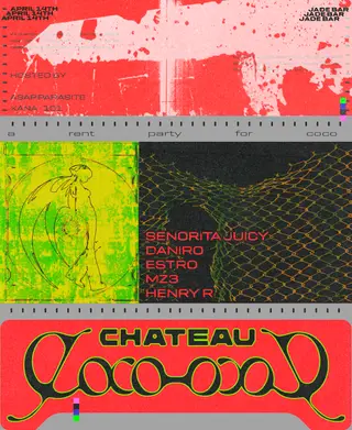 Coco Chateau takes place at Jade in New York City, United States on April 14, 2026. Featuring Daniro, senoritajuicy, estro, Mz3 (1) and 1 more. Techno and House sounds all night.