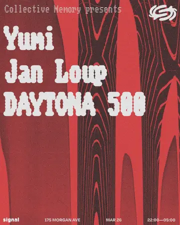Collective Memory: Yumi, Jan Loup, DAYTONA 500 (DJ DEADNAME b2b Eva Loveless) takes place at Signal in New York, United States on Thursday, March 26, 2026. Featuring Yumi, Jan Loup, DJ DEADNAME, Eva Loveless.