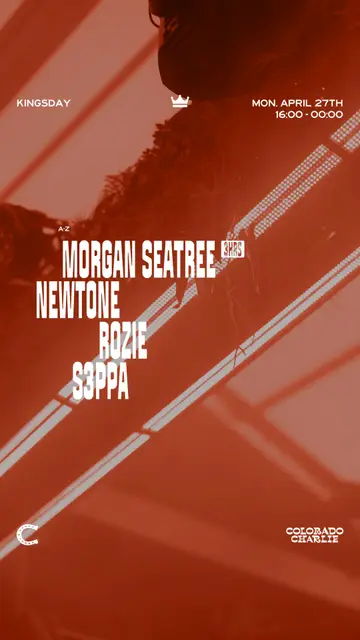 Set at Colorado Charlie, Colorado Charlie - Kingsday with Morgan Seatree (3hrs), NewTone, Rozie, S3PPA 2026 brings together artists and fans in The Hague on Monday, April 27, 2026, featuring Morgan Seatree, NewTone, Rozie and 1 more artists. This event brings together artists and fans who share a passion for dance music culture and House sounds.