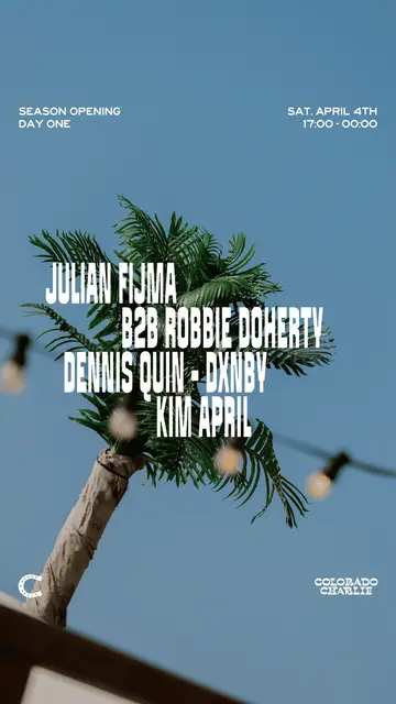 Colorado Charlie - Season Opening Day 1 (SOLD OUT) takes place at Colorado Charlie in The Hague, Netherlands on Saturday, April 4, 2026. Featuring Julian Fijma, Robbie Doherty, Dennis Quin, DXNBY and 1 more. House.