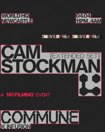 Commune x Infusion present Cam Stockman 2026 takes place at the renowned World Headquarters in Paris, France on Sunday, April 5, 2026, featuring Cam Stockman. This event brings together artists and fans who share a passion for dance music culture and House, Tech House sounds.