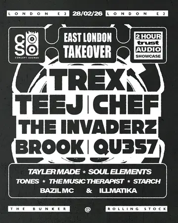 Concept Sounds takes place at Rolling Stock in London, United Kingdom on Saturday, February 28, 2026. Featuring DJ Chef, STARCH. Drum & Bass, Jungle.